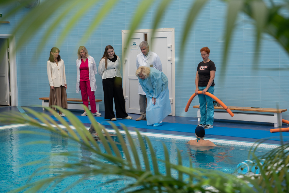 Существенное достоинство центра дородовой подготовки и послеродового восстановления, это, конечно, – бассейн. Как пояснил Вячеслав Болотских, заниматься там могут все, у кого нет противопоказаний. В настоящее время наиболее частым нарушением обмена веществ у беременных является гестационный сахарный диабет, и занятия в бассейне предусмотрено клиническими рекомендациями.В фитнес-зале проходят занятия как для облегчения течения беременности, так и для восстановления после родов. Также в Центре работает школа будущих родителей, где рассматриваются самые актуальные вопросы о родах, уходе за малышом, грудному вскармливанию, организации режима сна, развитию ребенка и другие важные темы.