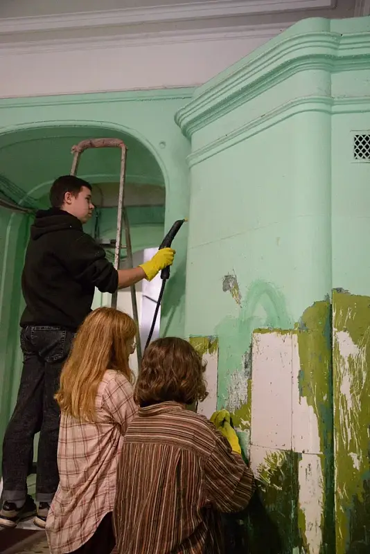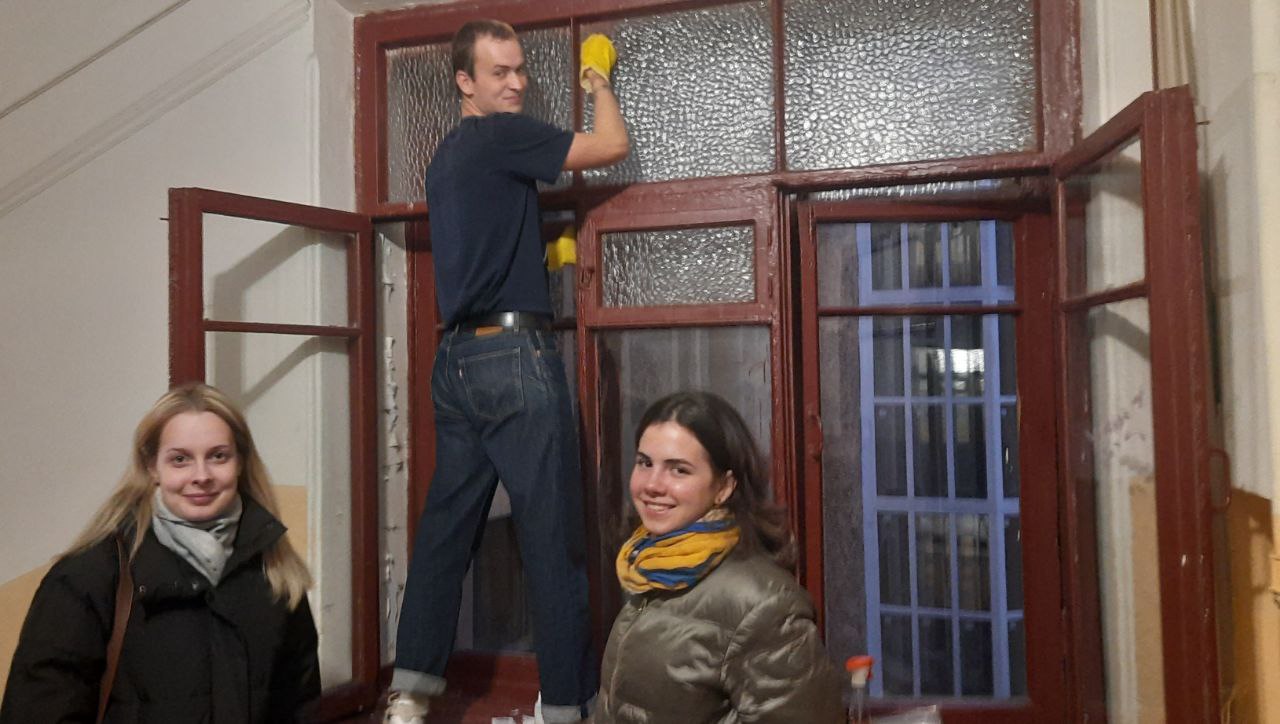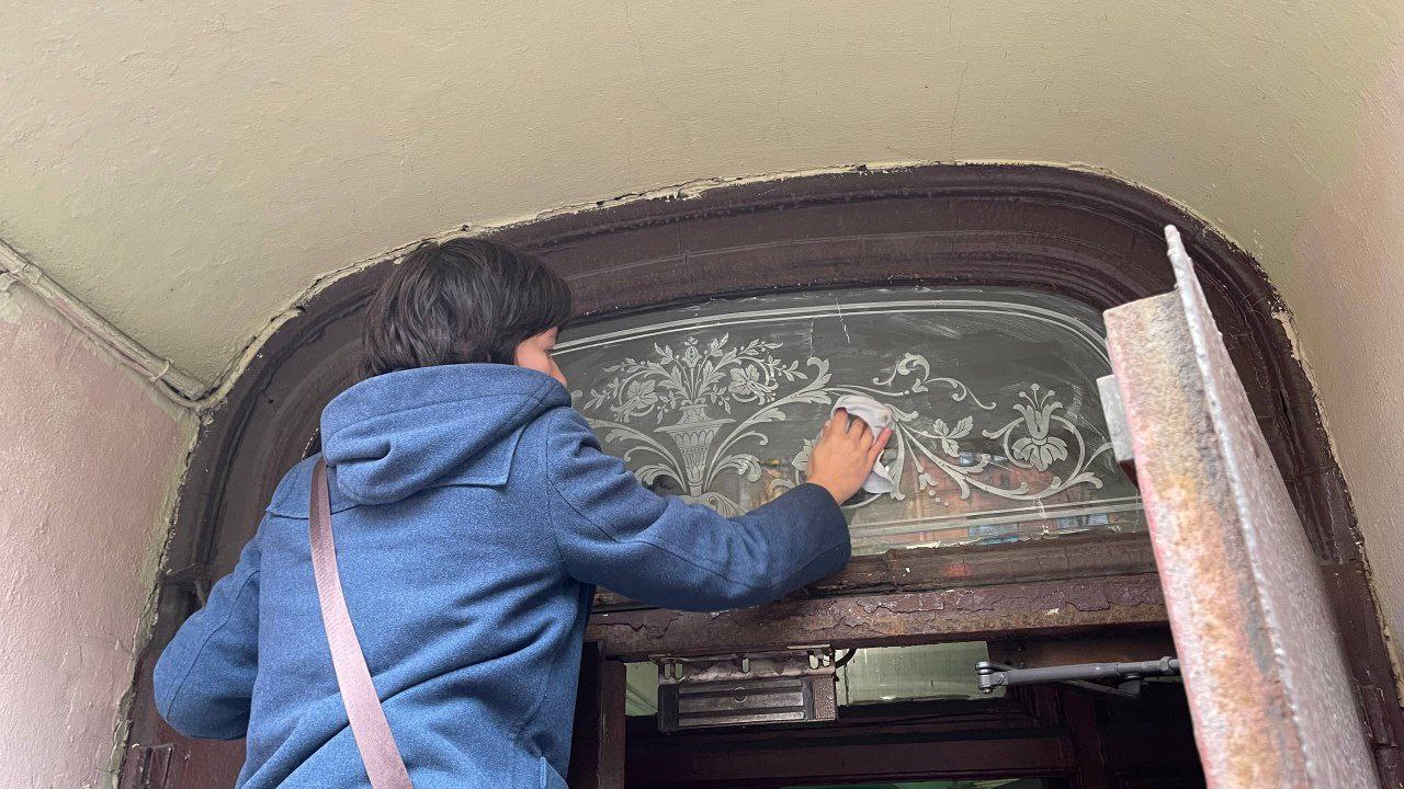 Добровольцы не только словом защищают хрупкое историческое остекление в многоквартирных домах исторического центра, но и личным примером показывают, как нужно заботиться о витражах.