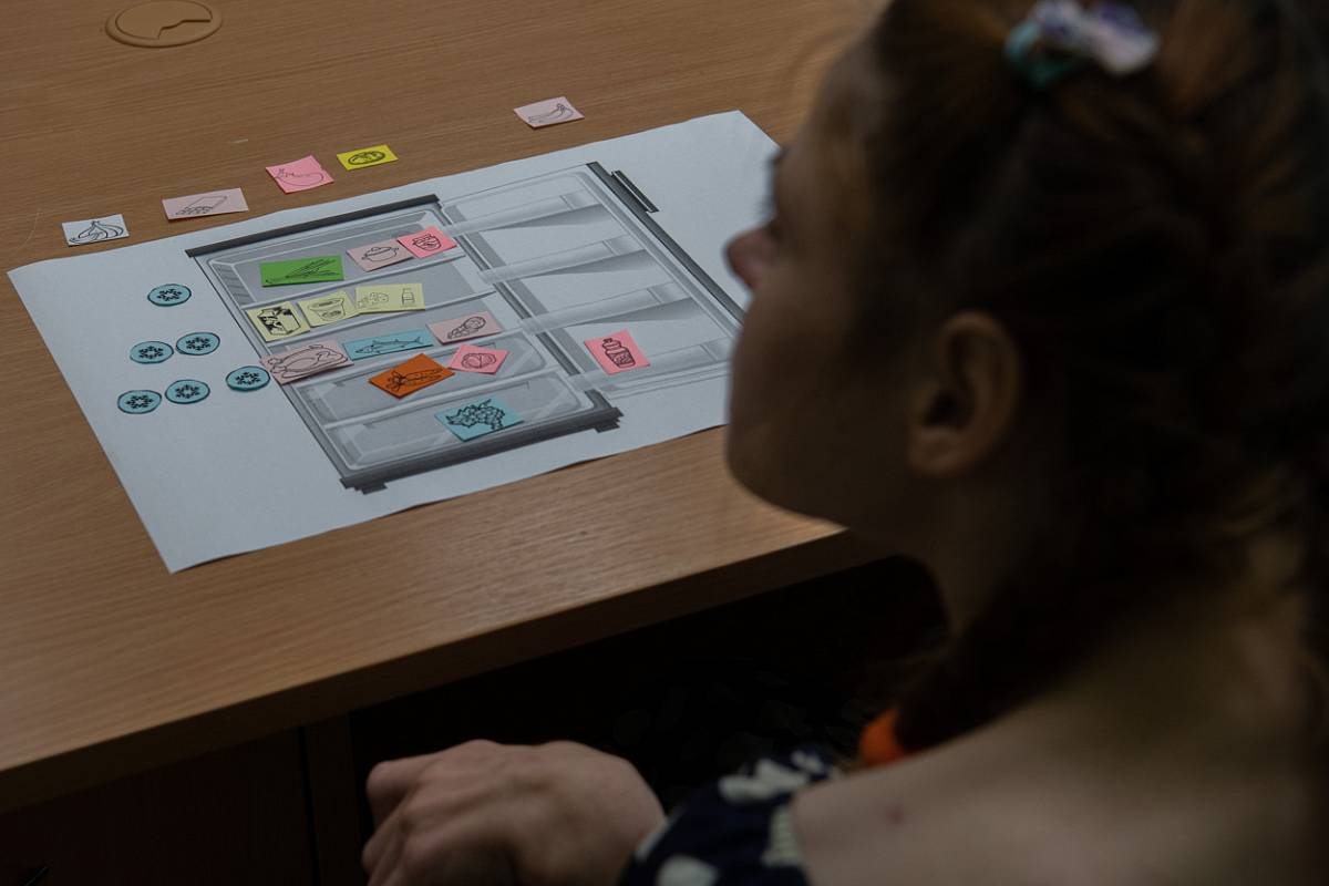 В учебном классе подробнейшим образом изучали… холодильник и его содержимое. Речь шла о правилах хранения продуктов. Что на какую полку лучше класть, а что вообще боится холода. Среди карточек с продуктами не оказалось мороженого и Светлана Агапитова поинтересовалось – а где его хранить? После некоторых раздумий, прозвучал ответ: в морозильнике.