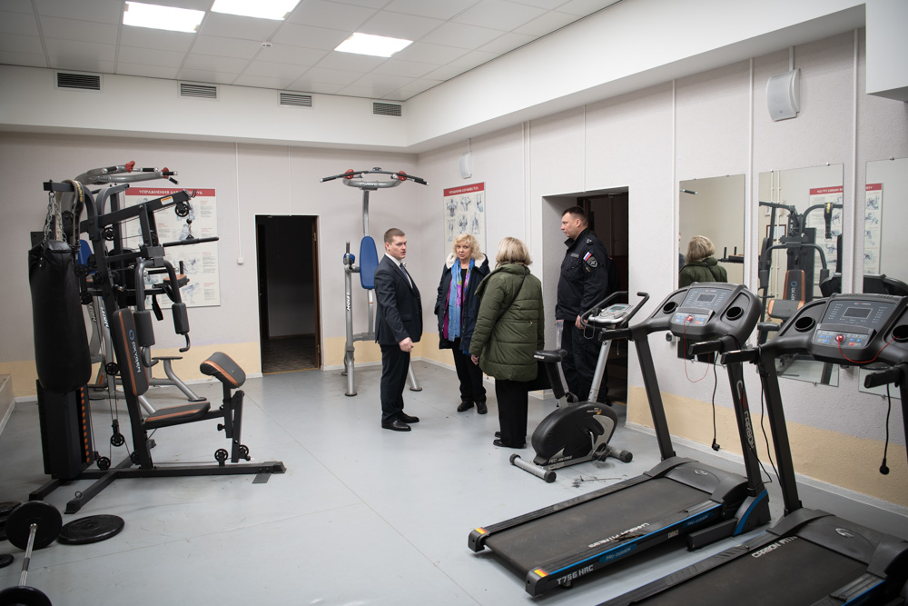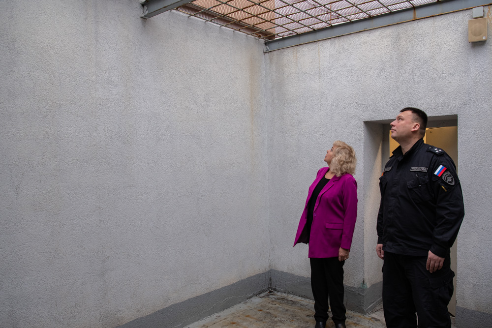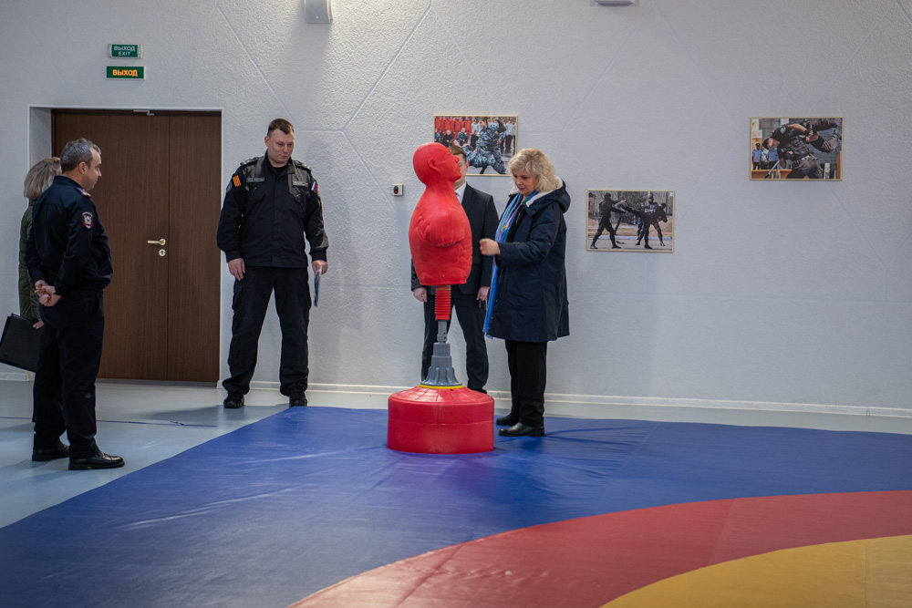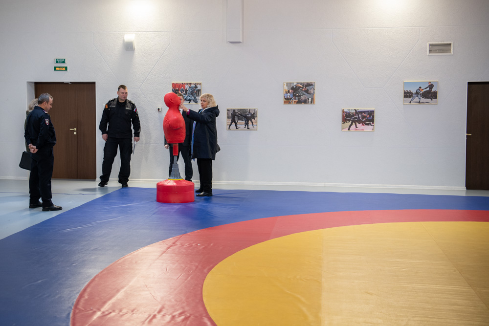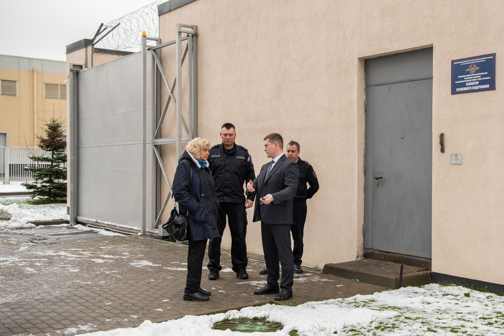 Встретили Светлану Агапитову начальник полиции УМВД России по Василеостровскому району Евгений Удодов и начальник ИВС Василий Гаенок. Здание, в котором располагается изолятор, новое – его построили в 2019 году, и это чувствуется во всем. Состояние помещений отличное, к тому же, здесь есть свой тир и даже борцовский зал.