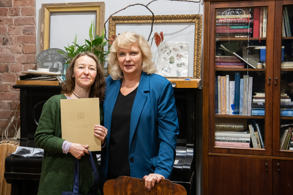 В теплой, почти домашней обстановке, среди свидетельств прошлого, Светлана Агапитова обратилась к героям встречи – волонтёрам, чьими руками очистились стекла витражей.«Спасибо за то, что вы есть, – сказала Уполномоченный. – За то, что вы хотите что-то изменить в нашем мире. Для этого нужна решимость, самоотверженность, и не у всех они есть: идет все как-то своим чередом, и ладно…Благодарственными письмами петербургского Уполномоченного и памятными сувенирами были отмечены Евгения Савельева, Максим Моисеев, Виктория Полухина, Ксения Паршуто, Глеб Лычев, Иван Лучакин и Кирилл Чернышев. К сожалению, не все добровольцы смогли присутствовать, но тёплые слова и знаки признания чуть позже нашли: Александру Тесакову, Александру Абеленцеву, Марину Перцеву, Полину Трубаеву, Ярослава Суворова, Нину Тамразян, Екатерину Марихину, Екатерину Опанасюк, Арину Говорову, Елизавету Белобородову. Также благодарственные письма петербургского Уполномоченного будут вручены исполнительному директору управляющей компании «МИР» Светлане Быковой и главному специалисту отдела районного хозяйства администрации Василеостровского района Екатерине Шевченко .