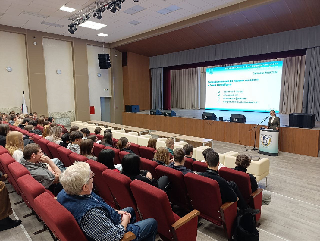 Ольга Аширова провела Единый урок прав человека на факультете среднего профессионального образования ФГАОУ ВО «Санкт-Петербургский государственный университет аэрокосмического приборостроения». 130 студентов 2-3 курсов узнали о деятельности Уполномоченного, приоритетных направлениях работы, в частности, о практике защиты жилищных прав.