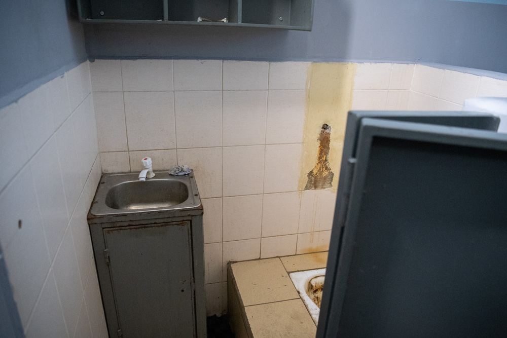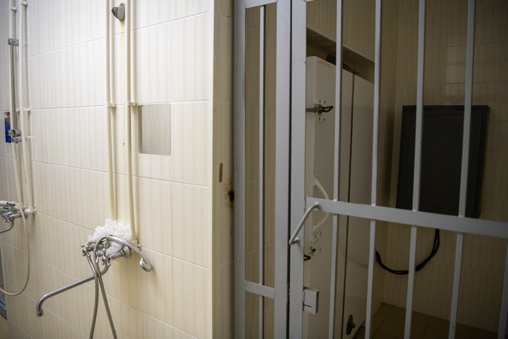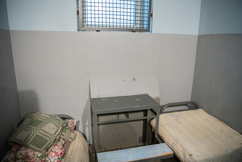 В камерах все стандартно – металлические шкафчики, привинченные к полу столы и скамейки. Встречаются двухъярусные кровати. Санитарные зоны отделены внушительной толщины перегородками с закрывающимися дверями – условия приватности обеспечены. Сантехника антивандальная, а сами отхожие места оборудованы «чашами Генуя». Одна камера сделана для граждан с особенностями здоровья. Там есть специальные опорные ручки, а в санитарной зоне – антивандальный унитаз из нержавейки.Что в буквальном смысле бросилось в глаза, так это – недостаток освещенности. Согласно данным измерений этот показатель меньше нормативного аж в шесть раз. Отчасти ситуацию спасает наличие окон, но это только в хорошую погоду, которой, увы, Санкт-Петербург не балует. Свет здесь идет от светильников обычной для камерных помещений конструкции – вмонтированных в стену. В них какой мощности лампы не вкрути – нормативного уровня не добьешься. Но в некоторых изоляторах устанавливаются также антивандальные варианты потолочных источников света, и они очень даже исправляют ситуацию.