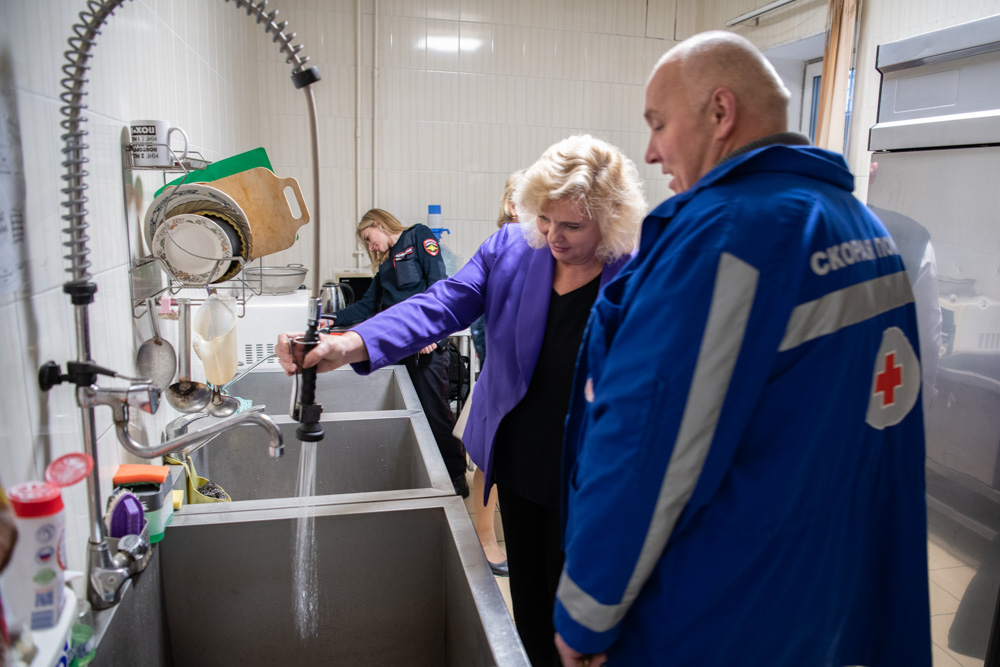 Нельзя не сказать и о медчасти. Прежде всего потому, что она здесь есть и выглядит как полноценный медицинский кабинет – две смежные комнаты, специальная мебель, оборудование. Как говорится, все познается в сравнении, и тут стоит припомнить «медчасть» в ИВС Пушкина – она там уместилась в шкафчике на стене. Но парадокс в том, что при такой впечатляющей разнице в материальной части, юридически медицинские кабинеты Петергофа и Пушкина примерно одинаковы, поскольку ни тот, ни другой не лицензированы.Поинтересовалась Светлана Агапитова и отказами при передаче подстражных в изоляторы системы исполнения наказаний. Эта проблема существует у все районных ИВС. Однако, здесь ее не считают актуальной: «раньше бывало, но уже год как все наладилось». Естественно, петербургский Уполномоченный поинтересовалась – в чем секрет такой успешной коммуникации? Сотрудники лишь скромно развели руками: «Нам сказали – наладить и поддерживать взаимодействие. Мы наладили и поддерживаем…». Правда выяснилось, что с учетом территориальности, петергофский ИВС работает в основном с СИЗО в Горелово, а не с Крестами.