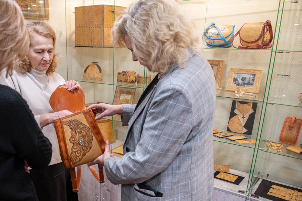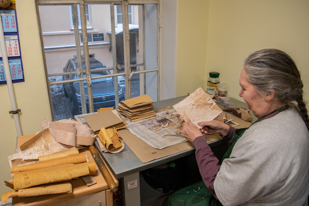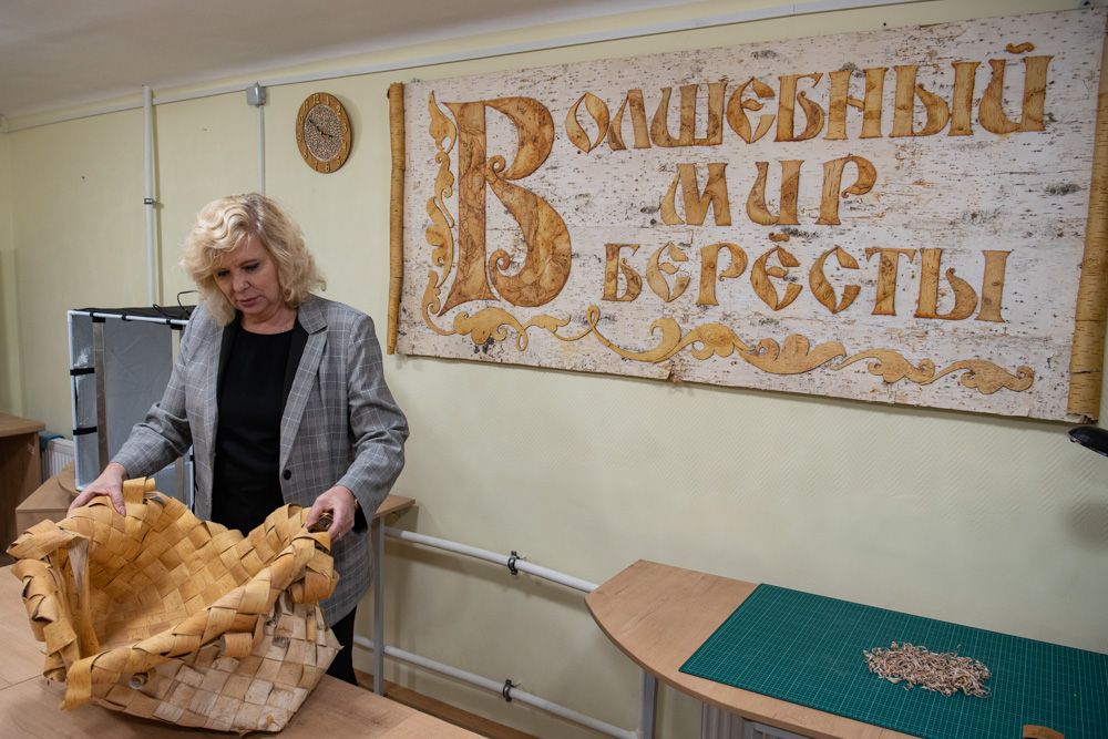 О том, как организована работа творческой мастерской, Светлане Агапитовой рассказала генеральный директор предприятия Ольга Замфир.Основной материал для производства доставляется из Западной Сибири. По мнению специалистов, это обусловлено требованиями к качеству бересты, которое в нашем регионе обеспечить невозможно.
