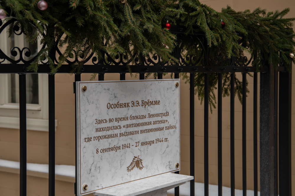 Ежегодно на 12-й линии Васильевского острова проходит мероприятие, посвященное жителям блокадного Ленинграда. Желающие отдать дань памяти собираются у одного из старейших в городе памятников деревянного зодчества – особняка Эдуарда Бремме. Именно там во время блокады была организована «Витаминная аптека», где выдавали витаминные пайки из хвои и табачной пыли. Для жителей блокадного Ленинграда эти целебные порошки, капли и напитки стали не только профилактикой авитаминоза, но и настоящим спасением.