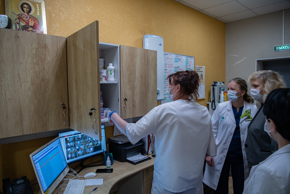 В этом же здании располагается многопрофильная клиника со стационаром, и такое соседство очень чувствуется в пансионе. Даже посты дежурных организованы по подобию медучреждений. Анна Секерина заметила, что по своему опыту, вообще не представляет профессионального ухода за пожилыми людьми без сопровождения врачей.Кстати организация пыталась сделать возможным получение в клинике медицинских услуг по полису ОМС, но пока этот вопрос решить не удалось. Хотя, это было бы очень полезно и удобно для тех, кто находится там по индивидуальным программам предоставления социальных услуг (ИППСУ).