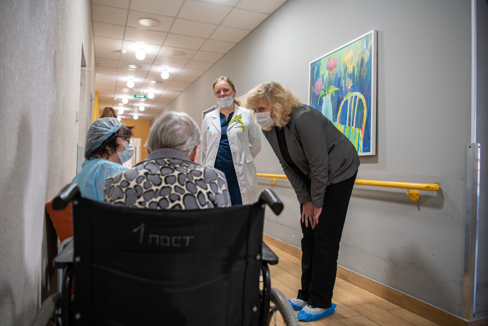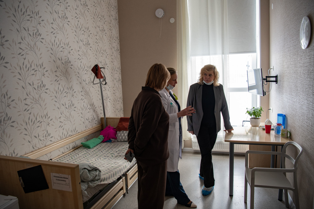 В сопровождении главного врача петербургский Уполномоченный обошла пансион и посмотрела, как живут подопечные.