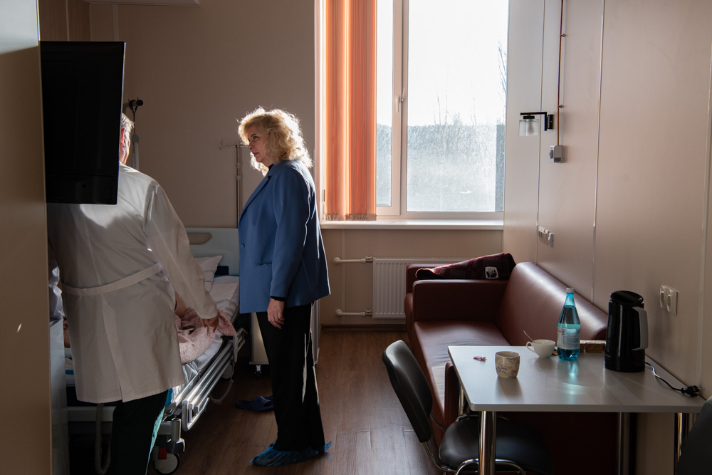 Чтобы разобраться с положением дел в этой сфере петербургский Уполномоченный решила изучить имеющиеся практики и опыт в этой сфере, а также обсудить актуальные вопросы со специалистами. Началось знакомство с Городской больницы Святого Великомученика Георгия. Во-первых, на ее базе действует эффективная реабилитация, а во-вторых, за четыре года работы Светлана Агапитова не получила ни одной жалобы на это учреждение.