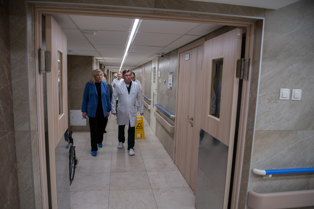 Для специалистов больницы Святого Георгия необходимость и обязательность реабилитации очевидна, как и недостаточность мест в этом отделении. Вопрос настолько актуален, что администрация учреждения подготовила проект перепрофилирования целого этажа под это направление. Причем, по сути, требуется там в основном косметический ремонт – оборудование у больницы уже есть.Петербургский Уполномоченный в сопровождении главного врача осмотрела несколько отделений стационара. Конечно же поднялись и на верхний, 8-й этаж, где планируется развернуть реабилитацию. Сейчас это – единственное пространство, в котором помещения напоминают еще советскую эпоху. Все остальные этажи имеют вполне современный дизайн и хорошее оснащение. Теперь очередь преобразований дошла до вершины здания, и даже в чем-то символично, что там будет именно реабилитация. Теперь осталось получить финансирование…
