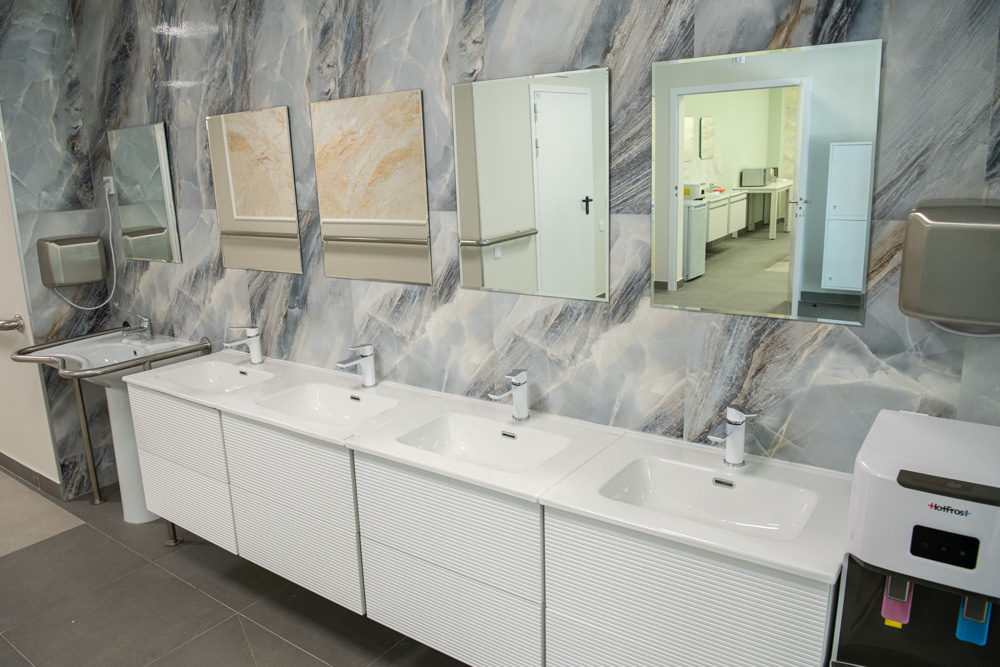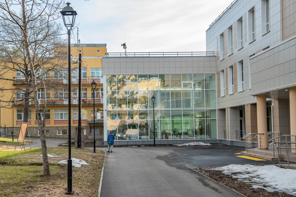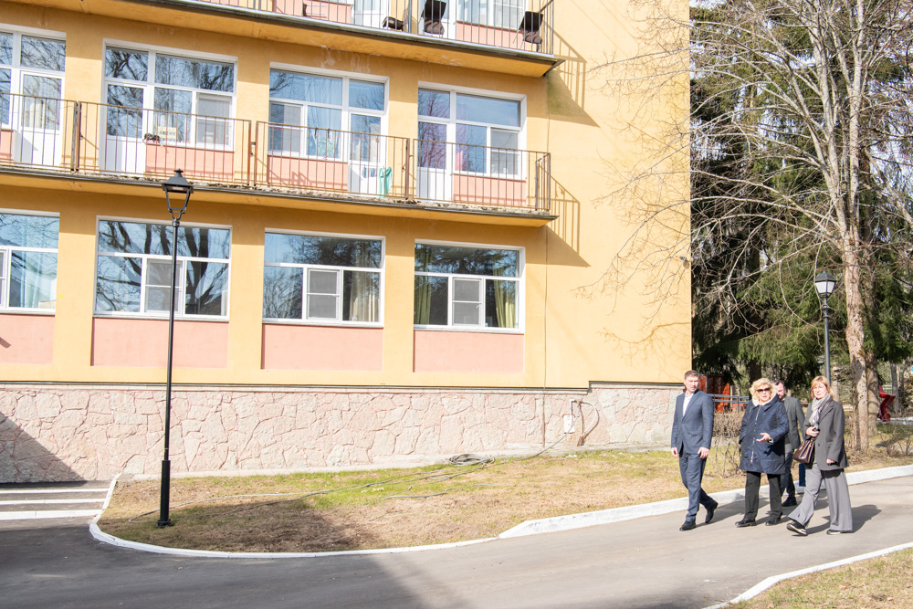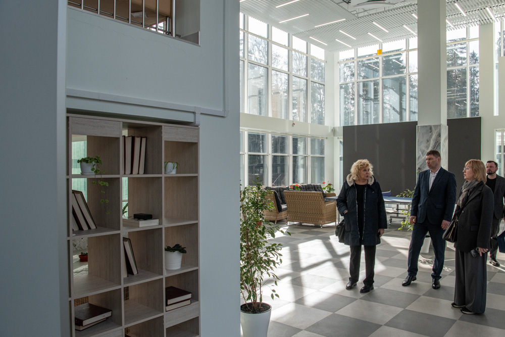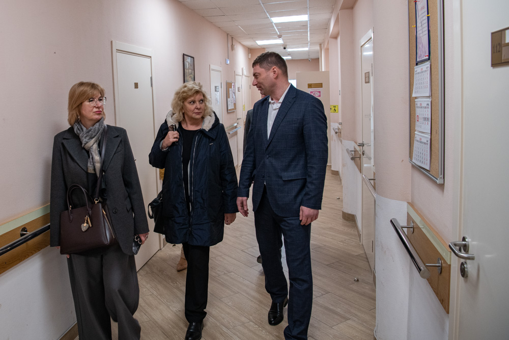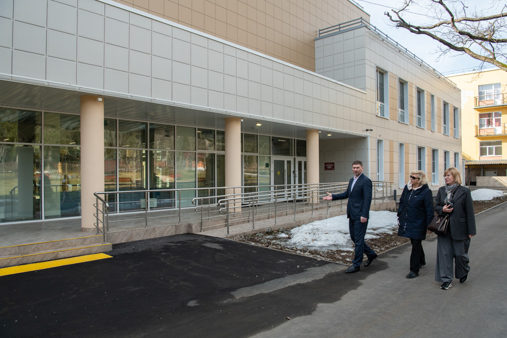 Вновь оказавшись на территории «Красной Звезды», Светлана Агапитова сразу обратила внимание на произошедшие здесь изменения. Между основным зданием и отделением милосердия вырос новый корпус, соединивший весь комплекс «теплыми» переходами. Он еще не сдан в эксплуатацию, однако директор учреждения Станислав Долбунов пригласил Уполномоченного посмотреть помещения первого этажа. Согласно проекту, везде обеспечена доступная среда. Около каждой лестницы есть специальные лифты.