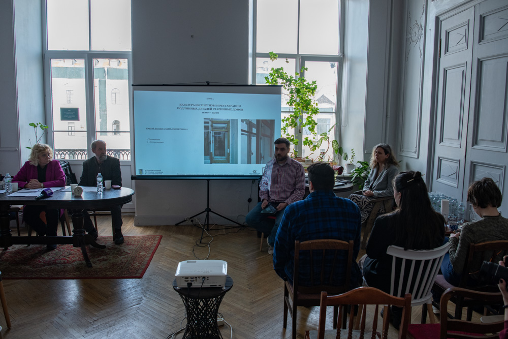 Второй блок был посвящен межрегиональному опыту. Коллеги из Нижнего Новгорода рассказали о работе реставрационного агентства «АСИРИС» и волонтерской «Школы реставрации». Представитель Фонда капремонта Калининградской области поделился практикой восстановления Илья Шаденков исторического облика зданий региона. Московский историк архитектуры Дмитрий Французов представил методику фотофиксации как инструмента контроля подлинности фасадного декора. Санкт-Петербургский Фонд капитального ремонта отчитался о собственных успехах по сохранению и воссозданию ценных элементов в работе с историческими зданиями.