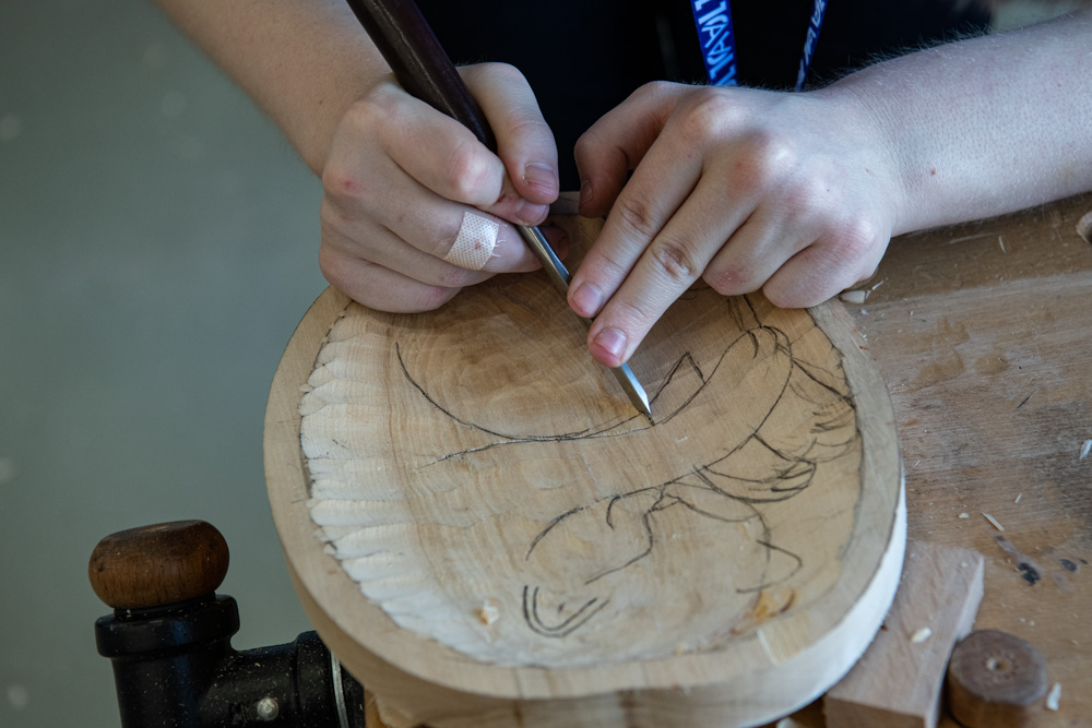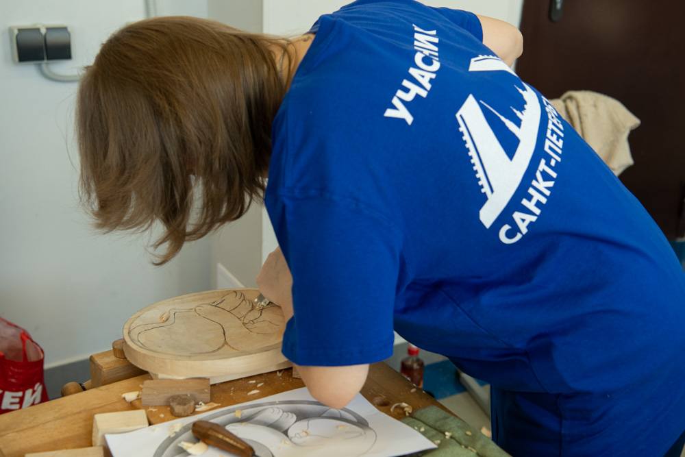 Попроще дела обстояли дела в столярной мастерской. Там соревновались в резьбе по дереву. Однако по увлеченности и царившему рабочему напряжению ребята ничуть не уступали it-шникам. Среди конкурсантов было и две девушки, орудовавших ножами не менее ловко, чем юноши. Кстати, мастера, присматривавшие за участниками, рассказали Светлане Агапитовой, что несмотря на широкое применение в этой сфере программируемых станков, специалисты, умеющие вырезать руками по-прежнему ценятся.