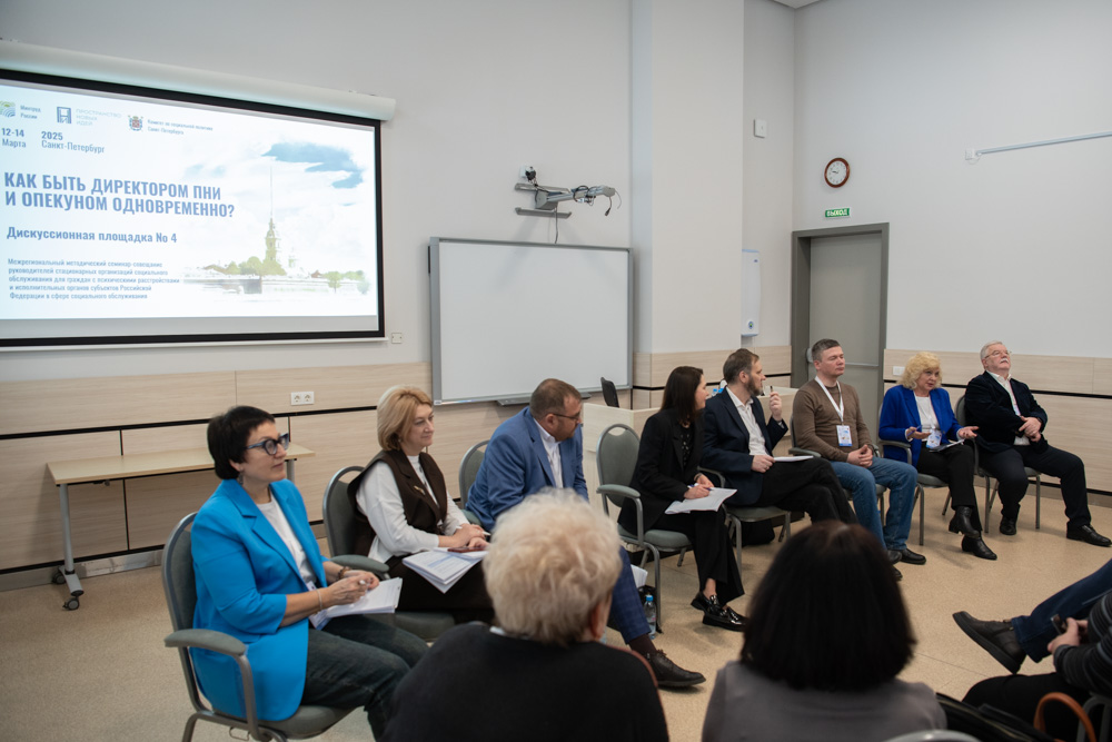 В Санкт-Петербурге прошел межрегиональный семинар-совещание «ПНИ – пространство новых идей». Это очередной этап интерактивной программы по обучению и обмену опытом, организованной Министерством труда и социальной защиты РФ. Основная идея состоит в осмыслении деятельности психоневрологических интернатов, представлении новаторских практик работы, совместном поиске решений наиболее актуальных проблем, имеющихся в этой сфере. Участники мероприятия: руководители организаций социального обслуживания для граждан с психическими расстройствами и представители исполнительных органов власти субъектов в этой сфере.