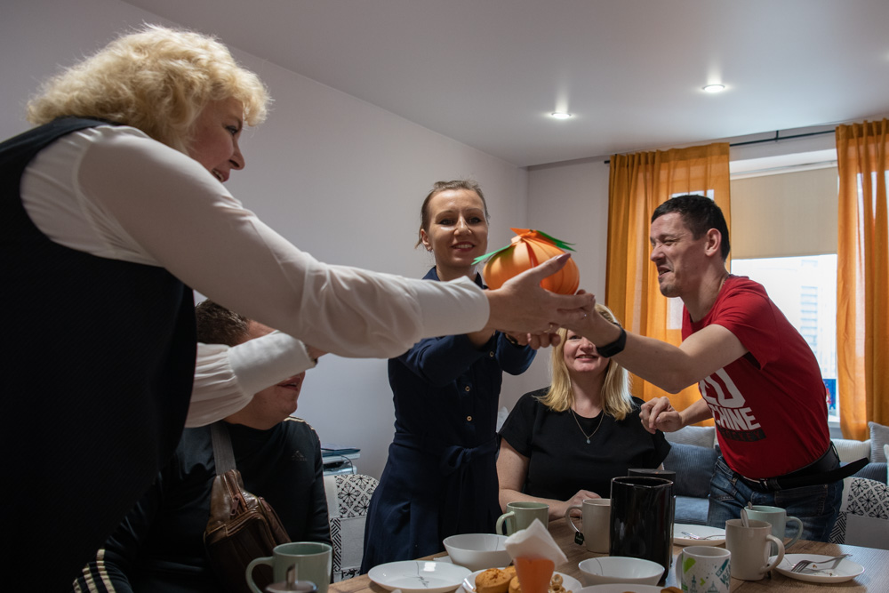 Основное назначение этого проекта – подготовить человека из системы интернатов к самостоятельной жизни. Проживающие в квартире осваивают социально-бытовые навыки, ищут себя в какой-то профессии, трудоустраиваются. Также сотрудники «Апельсина» помогают решить жилищный вопрос, если такие перспективы имеются. Ограничений периода пребывания нет – все индивидуально, в зависимости от способностей каждого. Главный критерий – готовность к самостоятельной жизни, без этого не отпустят.