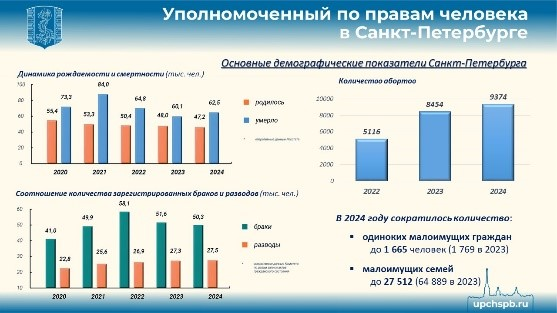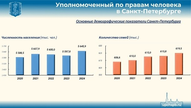 По традиции немного о демографии. За 2024 год по оперативным данным постоянное населения Санкт-Петербурга выросло на 48 тысяч человек, на 4 тысячи - количество семей (и достигло 619 с половиной тысяч, в них воспитывается почти 944 тысячи детей).