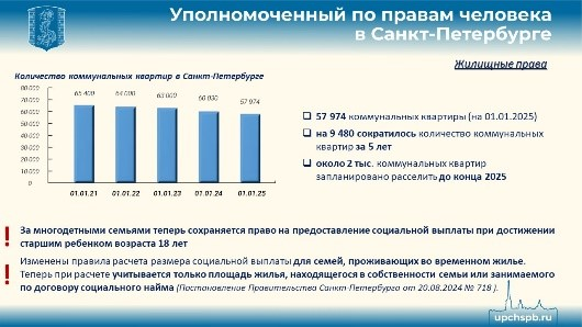На начало 2025 года в городе насчитывается почти 58 тысяч коммунальных квартир. За пять лет их количество сократилось на 9 480. До конца 2025 года с учетом выделенного финансирования городом запланировано расселить еще около 2 тысяч коммунальных квартир.