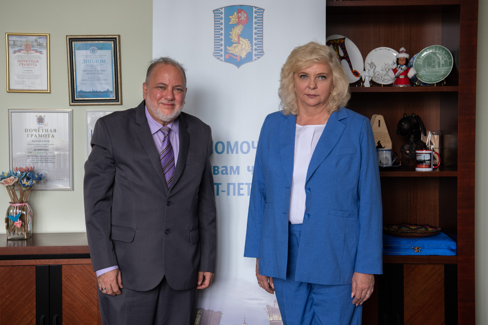 Начнем с форума. Альфредо Руис Ангуло приехал на него вместе с генеральным прокурором Венесуэлы Тареком Уильямом Саабом Халаби по приглашению российского коллеги Игоря Краснова. Генеральная прокуратура Российской Федерации уже не первый год открывает свой стенд на ПМЭФ, предоставляя возможность его участникам напрямую обратиться к представителям надзорного ведомства по вопросам защиты и совершенствования прав предпринимателей, с правозащитными инициативами, обменяться экспертными мнениями с партнерами из других стран. Участие в форуме венесуэльской делегации позволило Альфредо Руису Ангуло познакомиться с петербургской коллегой по правозащитной работе Светланой Агапитовой.